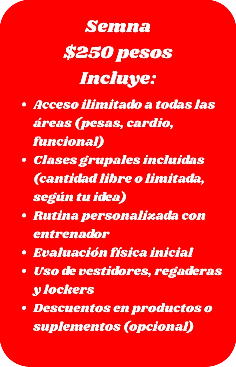 Contamos con instalaciones equipadas con tecnología de última generación, áreas de entrenamiento funcional, peso libre, cardio, clases grupales, y programas especializados de nutrición y bienestar. Nuestro equipo de entrenadores certificados está comprometido en brindarte asesoría personalizada, seguimiento constante y motivación en cada paso de tu camino.
